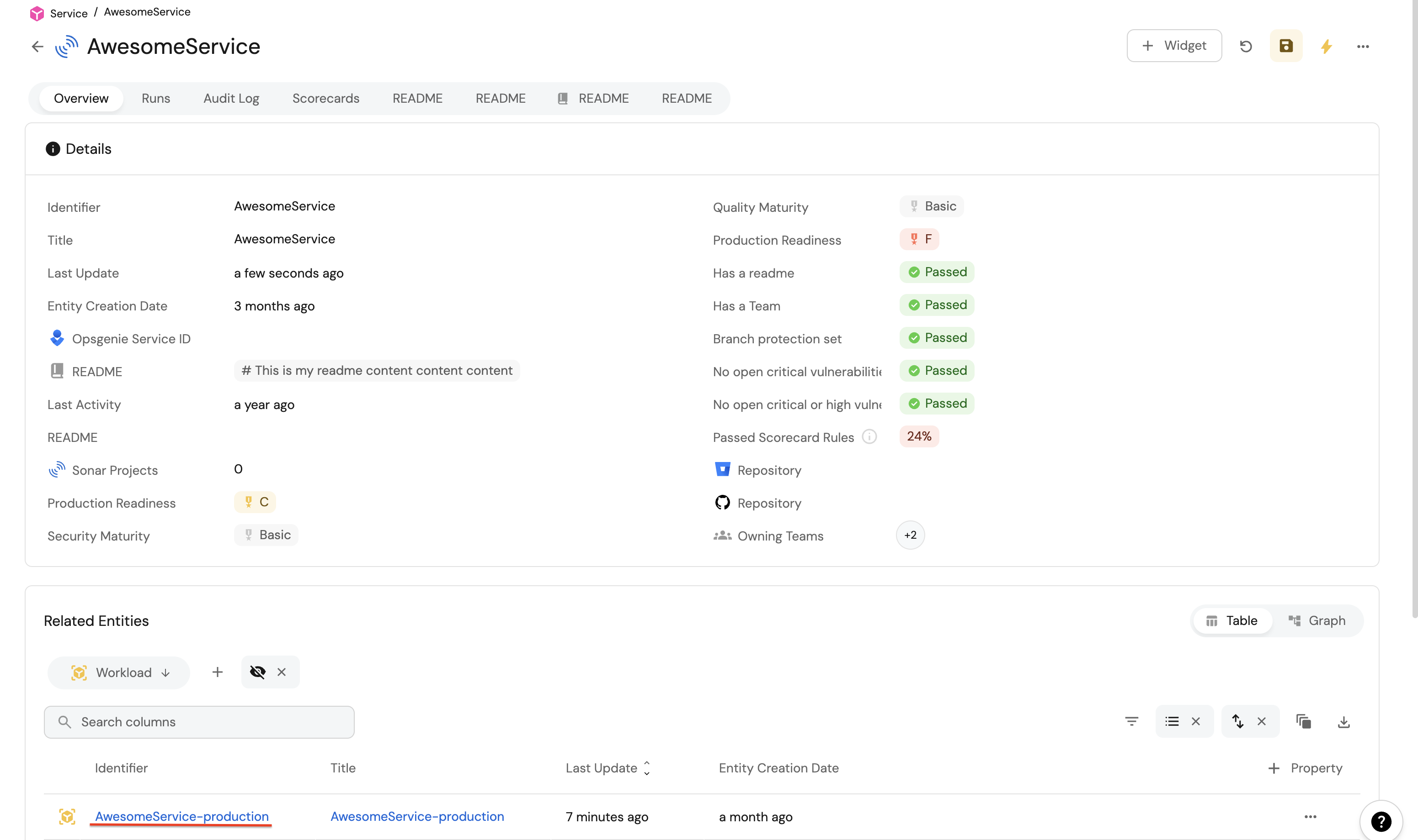 You may have noticed that the service relation is empty for all of our workload entities. This is because we haven't specified which workload belongs to which service. This can be done manually, or via mapping by using a convention of your choice.